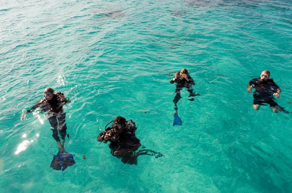 Las tortugas bobas se pueden encontrar descansando debajo de los salientes o incluso solo en el fondo arenoso.