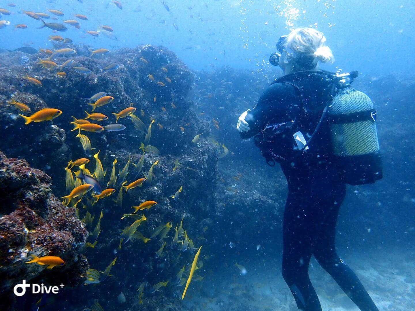 La pared es el escondite perfecto o el lugar de caza para una gran cantidad de comedores de plancton, así que espere que algunos bancos de peces se arremolinen alrededor del grupo.