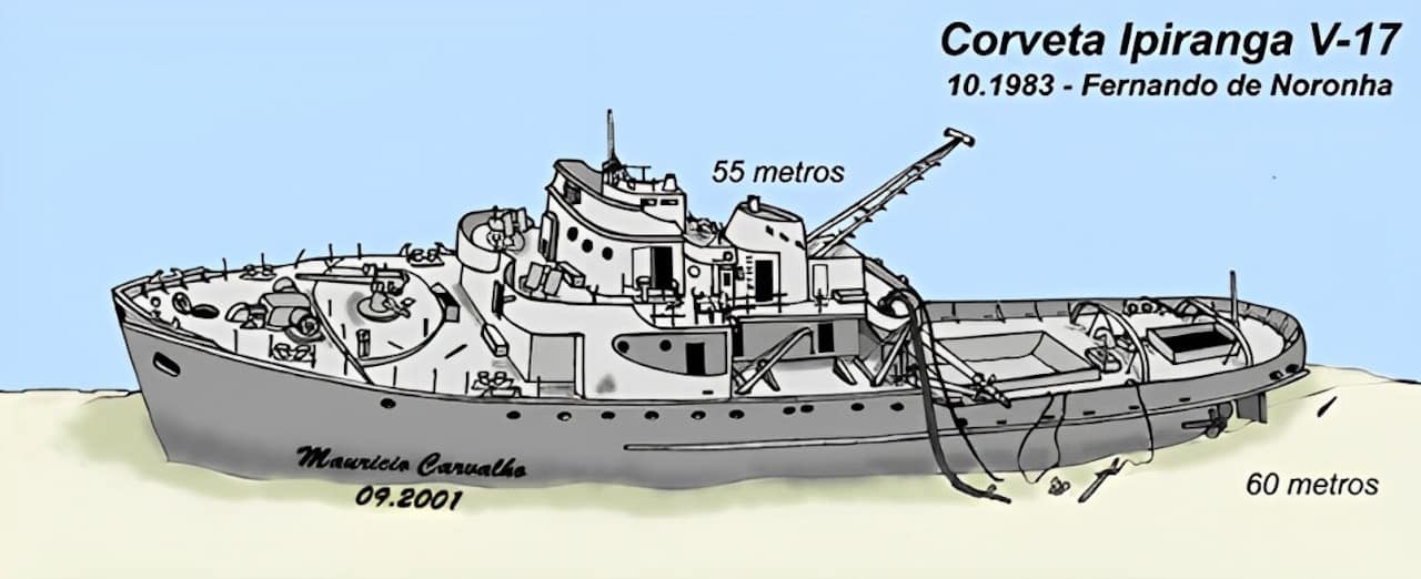 El Corvette V 17 – Ipiranga fue un barco de la Armada brasileña que se hundió en 1983 cerca de Fernando de Noronha. La embarcación fue utilizada como buque de apoyo para el lanzamiento de cohetes en el programa espacial brasileño y, posteriormente, para la exploración petrolera. Tras su hundimiento, la embarcación se convirtió en un arrecife artificial y un popular destino de buceo en la región. Con el tiempo, se ha convertido en un importante hábitat para una amplia variedad de especies marinas, lo que lo convierte en un atractivo destino para los amantes del buceo.