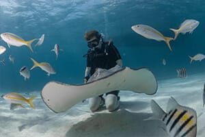 Originalmente atraídos por los pescadores que solían limpiar sus capturas en los bancos de arena del North Cay, las rayas locales del sur ahora son tan dóciles que es posible alimentarlas manualmente. Mientras que la mayoría de los visitantes optan por un recorrido por Stingray City que les permite caminar en aguas poco profundas y hasta abrazar a las mantarrayas, los buceadores tienen la oportunidad de disfrutar más de una gran experiencia a una profundidad de alrededor de 4 m mientras las mantarrayas verdaderamente enormes se acercan a la vista para bocadillos (los instructores proveen calamares para alimentarlos). Una de las mejores inmersiones poco profundas del mundo, también es perfecta para principiantes.