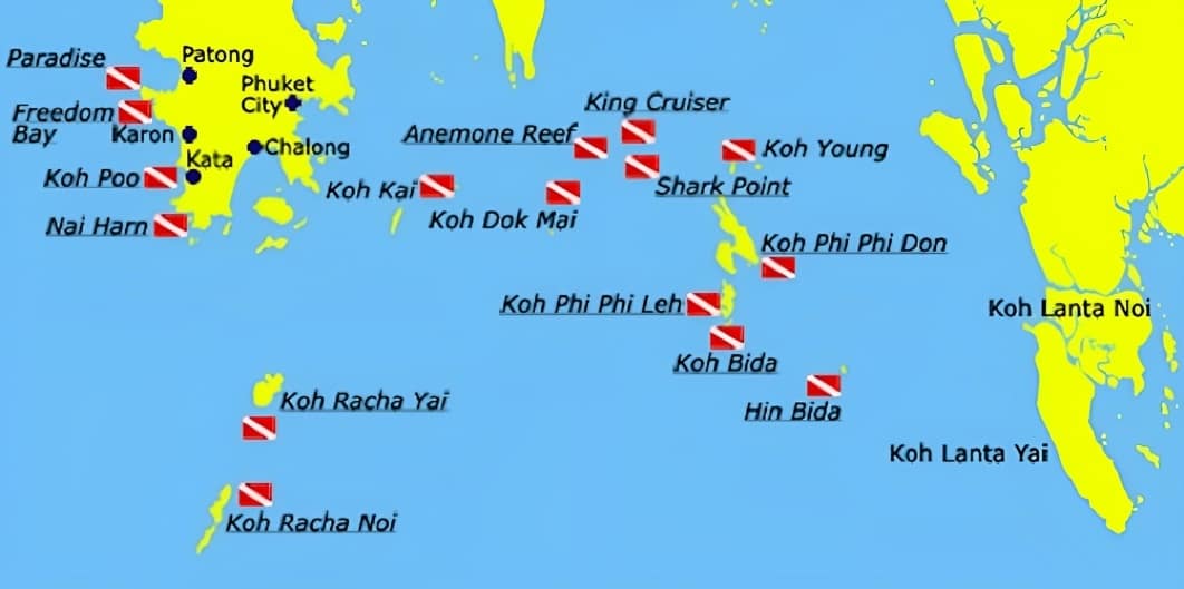 Tailandia es un destino de buceo popular en el sureste de Asia, con las islas Phi Phi y Similan como algunos de los principales lugares para practicar esta actividad. Estas islas ofrecen una gran variedad de vida marina, desde pequeños peces de colores hasta grandes tiburones, así como una variedad de arrecifes y naufragios para explorar. Los arrecifes de coral son abundantes en la región y están llenos de vida, incluyendo langostas, cangrejos y una gran variedad de especies de peces. En cuanto a los naufragios, los restos de algunos barcos hundidos se han convertido en lugares de buceo populares y se han convertido en hogar para muchos tipos de vida marina.