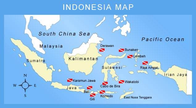 Indonesia es uno de los principales destinos de buceo en el sureste de Asia, gracias a su gran biodiversidad marina y una gran variedad de sitios de buceo. Bali es conocido por su impresionante variedad de vida marina y por sus hermosos arrecifes de coral. Komodo es el hogar de las mantarrayas gigantes y los tiburones martillo, además de contar con hermosos paisajes submarinos. Raja Ampat, ubicado en la costa oeste de Papúa, es famoso por ser uno de los lugares con la mayor biodiversidad marina en el mundo, con más de 1500 especies de peces y 600 tipos de coral. Además, en Indonesia se pueden encontrar numerosos sitios de buceo con restos de naufragios y barcos hundidos.